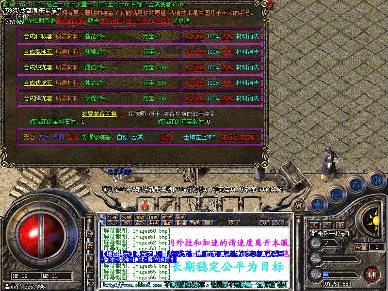 [251]【游戏公告】本服:无英雄、无外挂、无会员、不出售装备。还大家一个干净的传奇天空,让大家在PK和打装备中获得乐趣,你们的快乐就是我们的追求.如果觉得好就请大家多多宣传。。