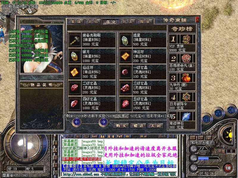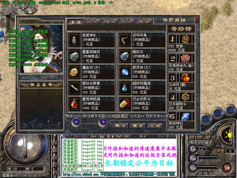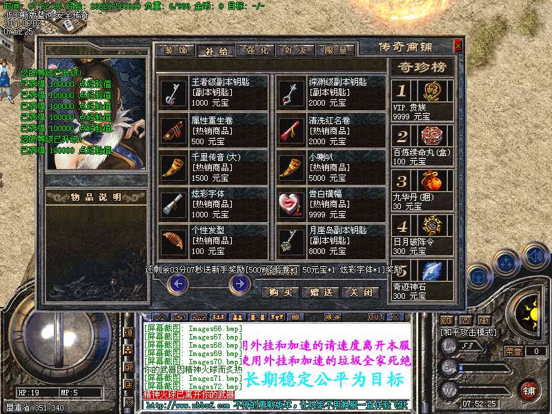 【温馨提示】本私服 G M 管理 自称Gm均为骗子唯一充元宝方式在登陆器.网站.进行充值.比例 短信1:1000 点卡1:1700 网银 1:2000