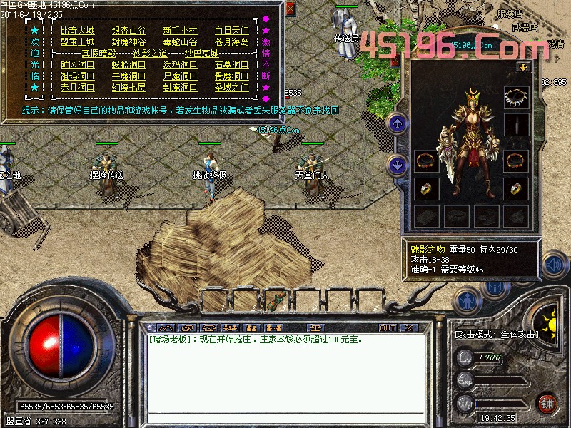 〖提示〗:请大家牢记注册帐号时所填信息,若发生物品被骗或者丢失服务器不提供找回装备服务!