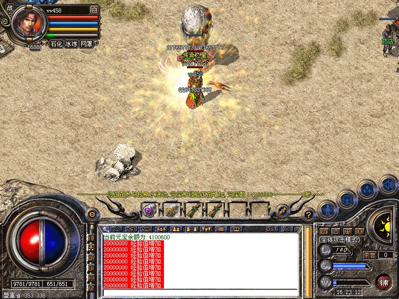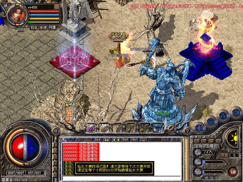 本服务器新区首次拿沙奖励城主8888888元宝!老区拿沙5000000元宝,沙奖励请在22点01分-22点20分之内进入沙奖励室获取奖励证明兑换攻沙元宝奖励。