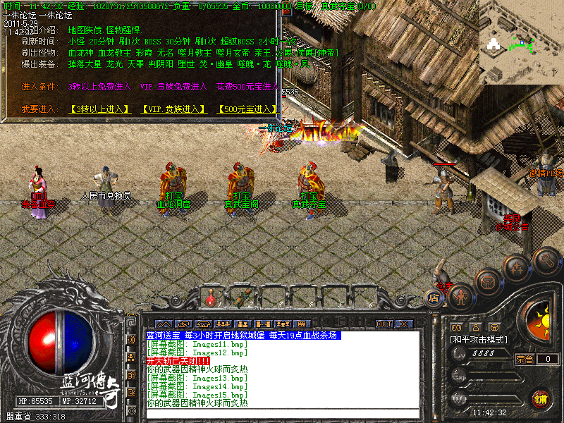 苍龙二室的17.12进入苍龙皇室.地图里怪物攻击非常震撼,建议组队进入.小怪30分钟刷新一次,大型BOSS终极BOSS两个小时刷