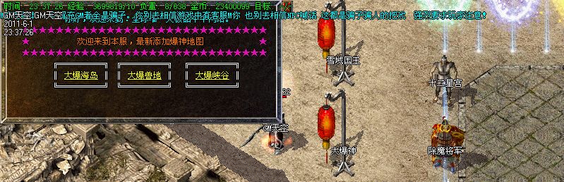 5.【等级提升】:建议新手先去脑残使者处做完任务,到新手处泡点,可免费泡到顶级,经验答200W一秒之多 ,绝对好升