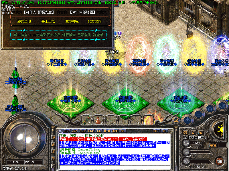 【更新】新增【雄鹰浮云】超漂亮的顶级套,超高的属性!请到下载好补丁, 华丽的外观谁看了都会心动!全套出发HP+2500,MP+2500.攻魔道+100.已激发,传送命令@move,超帅超刺激