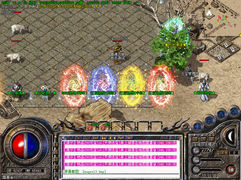 4.独创十次转生系统 十转生总赠送属性点3350个属性,可以转生10次 转生获得封号 详情点击土城转生使者,十转玩家可以进入十转天地打宝