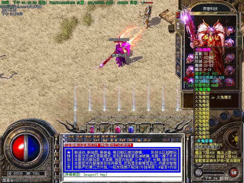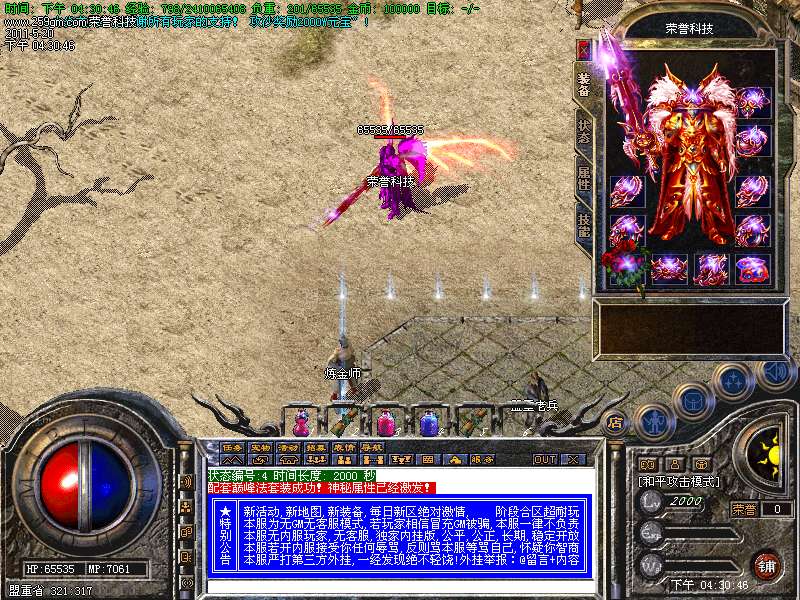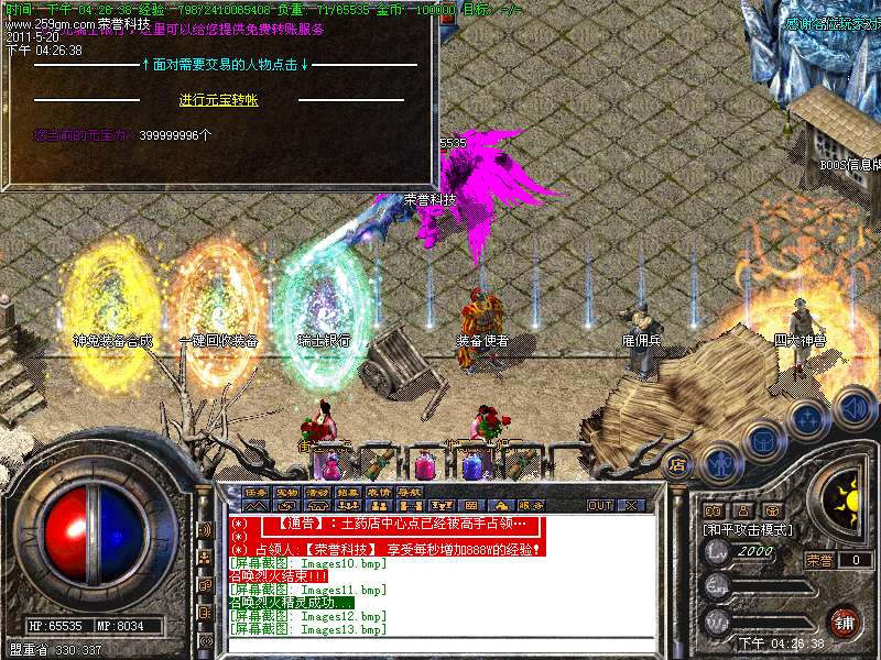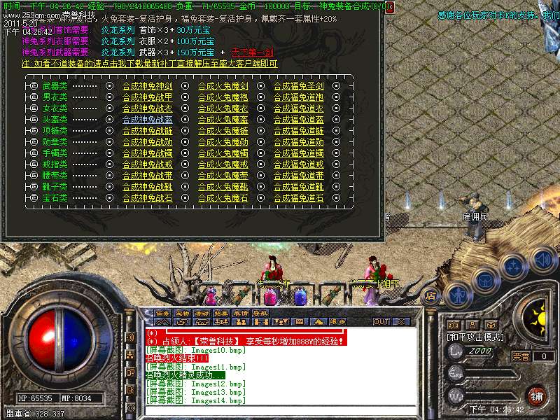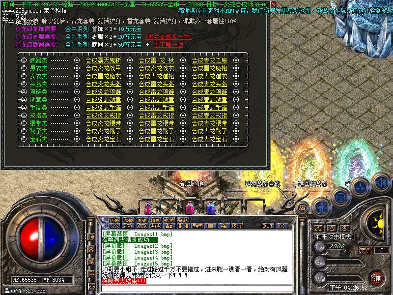【特色功能】:本服务器独家增加风云武器,风云衣服,只需用炎龙装备合成无须购买。