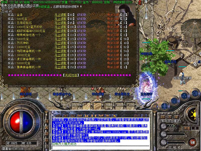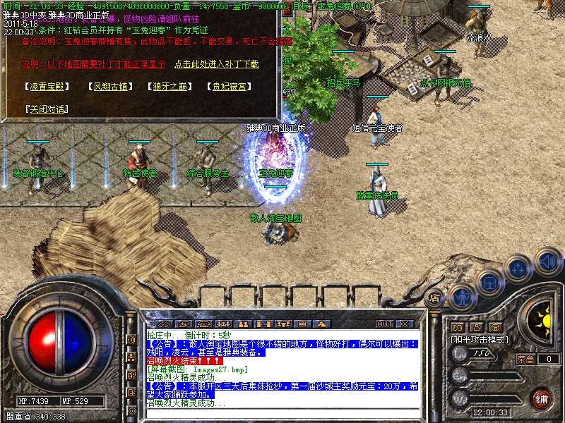 【特色7】;玉兔迎春地图是本服爆率比较高的地方,可爆出残阳,凌云,雅典套装,强烈推荐。