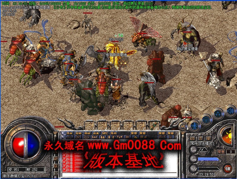 [253]60级道士召唤白虎,80级加强白虎,100级招“变异护法”一只.110级招“变异护法”两只,120级招“变异军师”两只,两只,130级招“变异天将”两只,140级招“变异皇帝”两只带麻痹属性,防御攻击速度都有一定提高。群魔传奇总站[151]装备升级请点击包裹栏右下角漩涡按钮进行升级,如果玩家看不到漩涡按钮请下载补丁!
