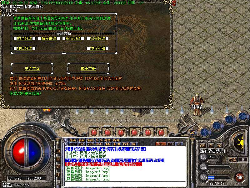 - ☉ 热血传奇单机版V176怀旧复古智能假人攻沙陪玩单机一键安装GM后台免虚拟机