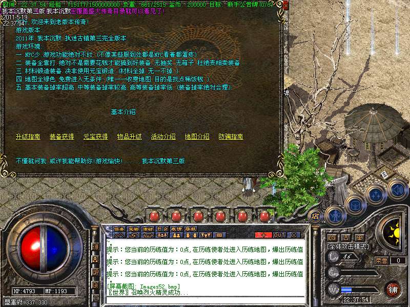 【特色1】:游戏网站:我本沉默执迷古镇第三版!游戏命令:@加入门派 @退出行会 @允许夫妻传唤 @夫妻传唤 @move @服务!如果你看不见地图装备,请下载补丁解压覆盖盛大传奇目录就可以看见了!