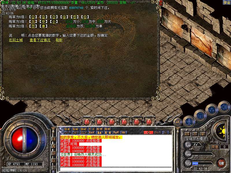 【特色12】本F新增激情泡点功能,每1秒获得2万经验(非安全区),此地图是行会必争地图....也可以去贵族泡点区泡经验(安全).