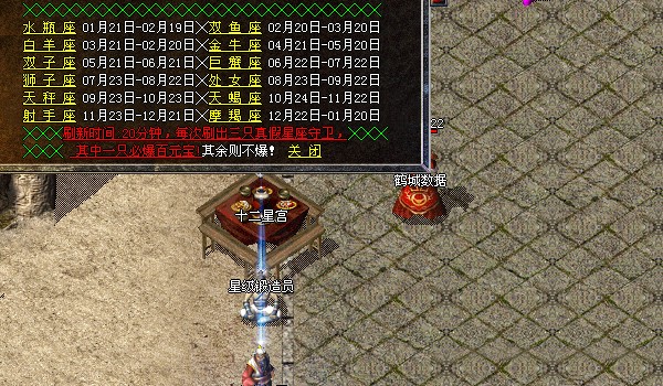【更新】增加12星座,每20分钟每个星座刷3只守卫,其中一只为真,杀死必爆100元宝!!