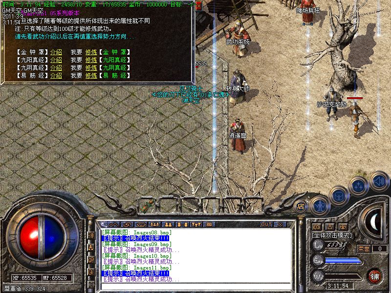 系统二 本服最新增加武功系统,请等级达到100级的玩家,特别注意。达到100级以后请马上到盟重土城找NPC学习武功,错过了是你的损失。