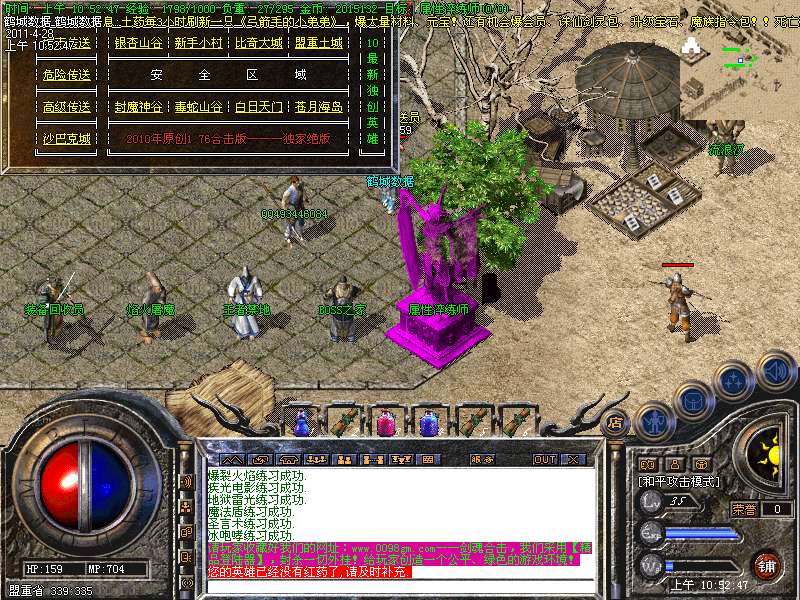 [251]各位玩家:每次服务器重启后所有地图怪物将重新刷新,系统刷新怪物是一个地图一个地图刷出来的,所以有些地图需要等待15-20分钟后才会有怪,敬请注意!