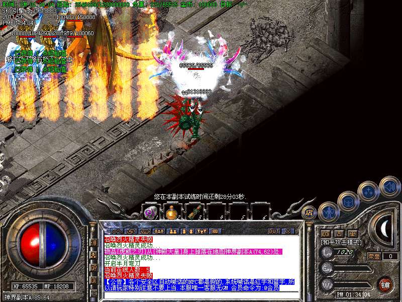 【神界】进入此副本,刷很多BOSS,可暴本服任何装备。通关后可获得经验奖励或者直接进入混沌之地。
