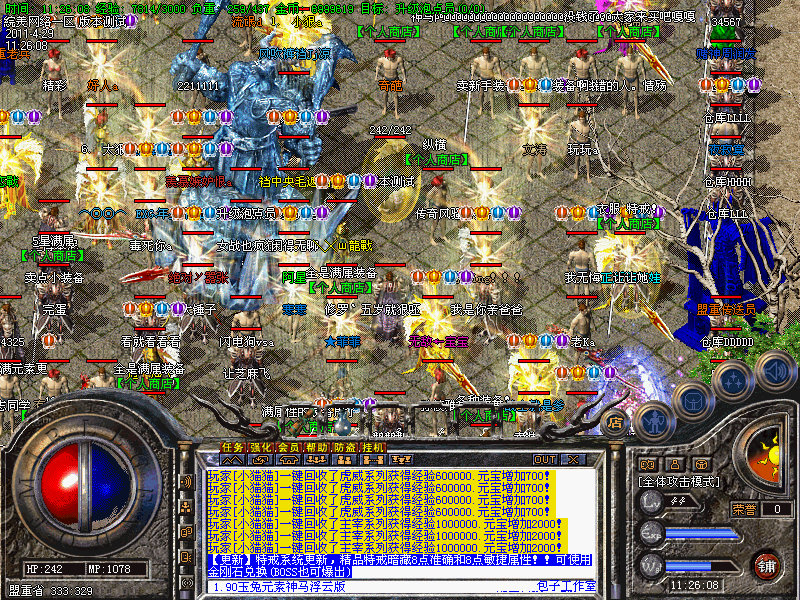 5:新增【神马浮云】超漂亮的顶级套,超高的属性!请到下载好补丁, 华丽的外观谁看了都会心动!全套出发HP+2500,MP+2500.攻魔道+100.已激发,传送命令@move,超帅超刺激