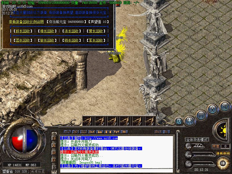 【装备回收】转生装备每个阶段的装备都能在土城NPC那里回收!换的声望-经验-元宝!所以请大家不要乱扔装备.
