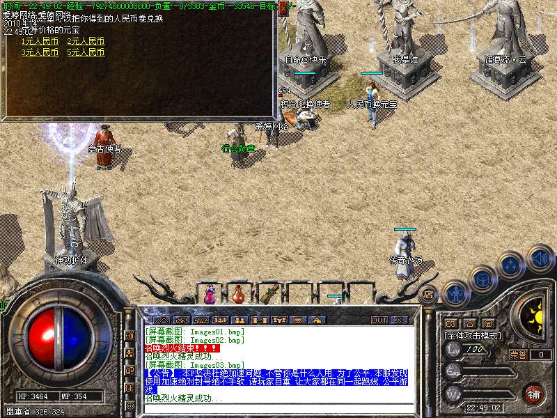 游戏特色:本服游戏里面有超完美的东南西北赌博系统. 玩家还可以根据自己的在线时间,免费领取相对的元宝.设计完全参照非RMB玩家的需求.. 游戏里还有 万能格 NPC 是考验您智商的地方. 四十个问题.您敢回答么? 有钱是爷, 那么, 没钱就杀爷吧.