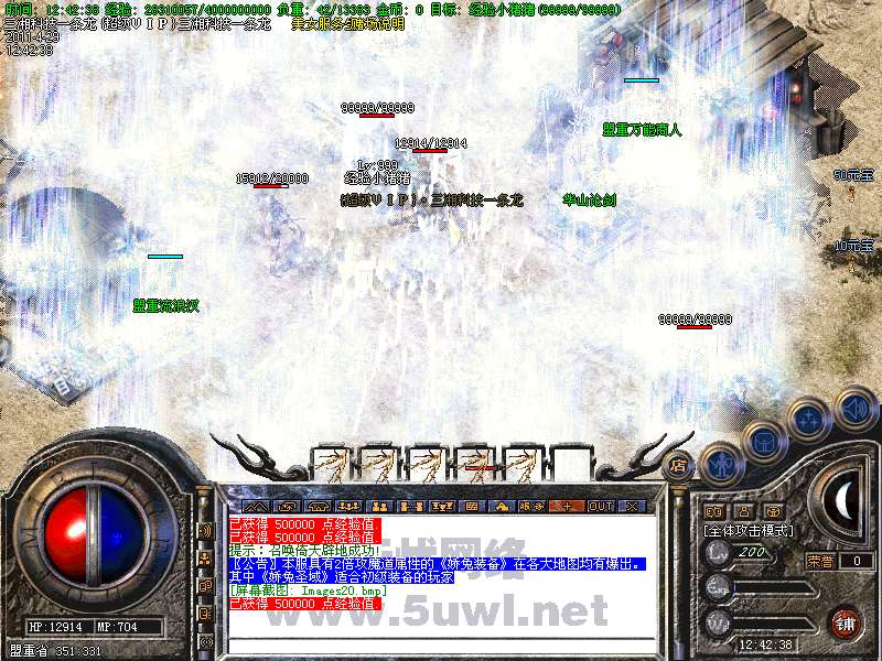 功能:升级系统、闭关修炼、装备合成系统、五行系统、转身系统、超级VIP、行会战场等。