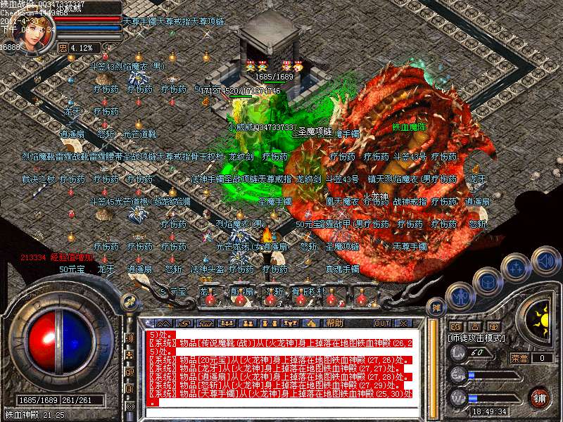 小怪大量爆赤月.雷霆.可以回收元宝.让大家不花钱带终极