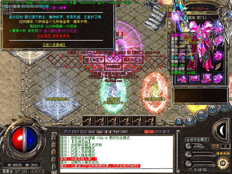 【新手上线】平衡了三职业!人物上线就送新技能和大量财富包括元宝!升级无需打怪!泡点直接到顶级!