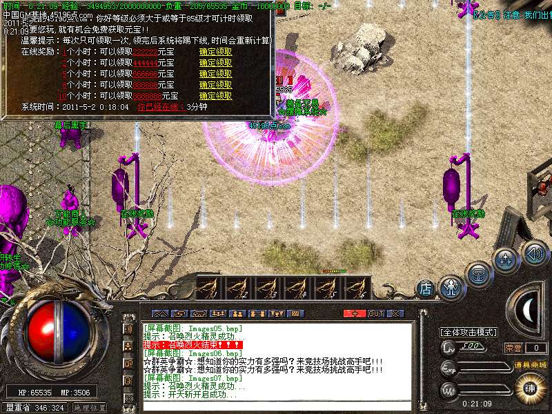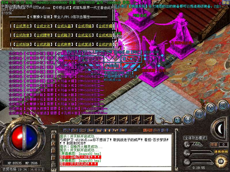 【新手上线】平衡了三职业!人物上线就送新技能和大量财富包括元宝!升级无需打怪!泡点直接到顶级!.