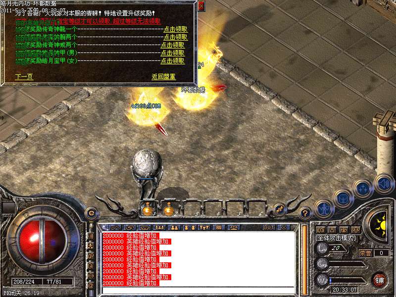 [255,249]攻城奖励:晚上22:01-22.30可以自行在沙皇宫领取奖励.攻城奖励为128W元宝!