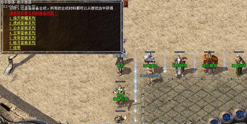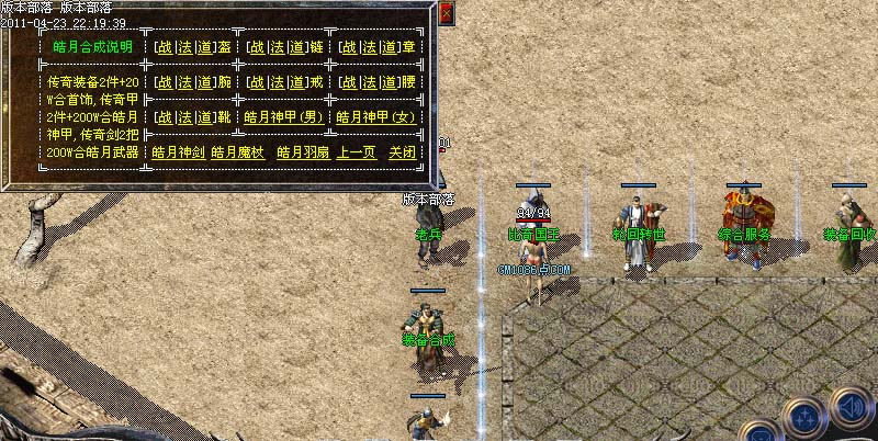 ②战后补给:每晚攻沙后22:30--23:30在[土武器店门口]附近每隔5分钟发放1W元宝、1000W经验卷