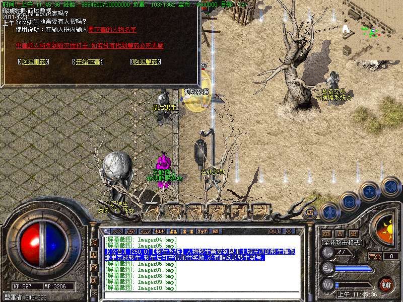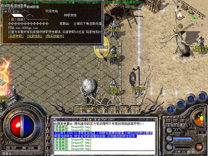 【转生系统】人物转生需要到盟重土城左边的转生雕像那里完成转生.转生后可获得属性奖励.还有酷炫的转生封号和名字变色.