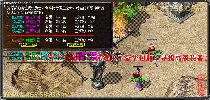 本服务器新区首次拿沙奖励城主1000000元宝!沙奖励在22点5分至22点15分领取!