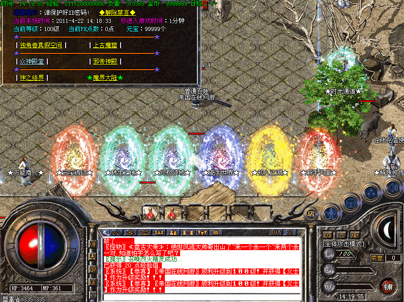 本次版本更新新增四地图:七彩の系列装备小怪也暴哦!进入地图无条件 1秒扣1元宝!还可以爆出升装备的宝石哦