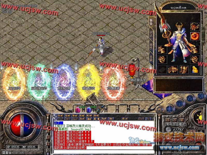[宠物系统]:玩家可用灵宠神石进行喂养麒麟圣兽.此宠物带群攻.绝对是练级打BOSS的好帮手!!!