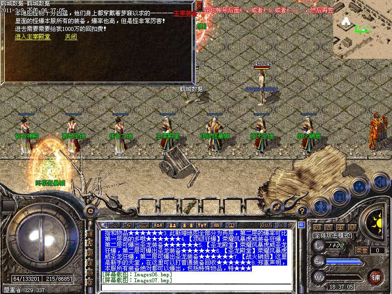 *★★★★★★★★★★ 地 图 介 绍 ★★★★★★★★★★★★★★★★1.新增【翡翠圣地】【传奇神殿】【血鹰魔窟】【金福之境】★★★★★★2.此新增地图绝对可爆全服所有装备装备,包括特殊戒指和物品★★★★★★3.此新增地图全部分为两层,第二层的爆率可比第一层高的多哦★★★★★★4.【顶级狂爆】荣耀风暴虎威装备狂爆,第二层可爆出圣龙装备★★★★★★5.【圣龙殿堂】荣耀风暴虎威圣龙狂爆,第二层可爆出圣龙装备★★★★★★6.【圣龙殿堂】荣耀风暴虎威圣龙狂爆,第二层可爆出圣龙装备★★★★★★7.【战火硝烟】这里是新手的天堂,在这里可以打普通装备回收★★★★★★8.郑重声明,本服所有装备绝对都可以爆出,包括特殊物品,特★★★