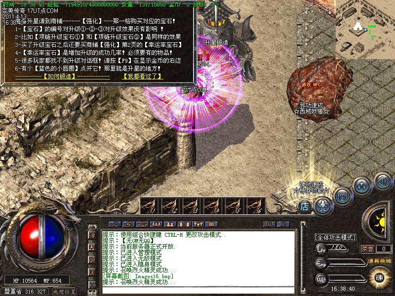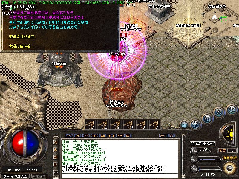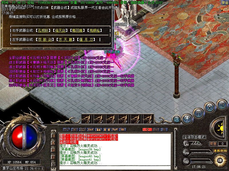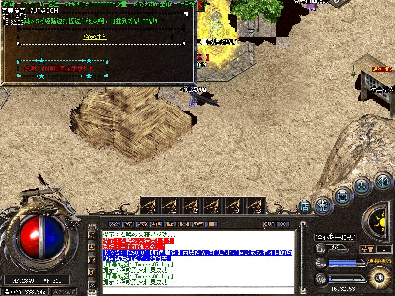 【新手上线】平衡了三职业!人物上线就送新技能和大量财富包括元宝!升级无需打怪!泡点直接到顶级!
