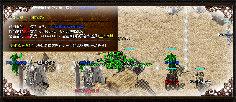 打到多余的装备千万别丢掉,在国家使者处可换取经验或元宝!
