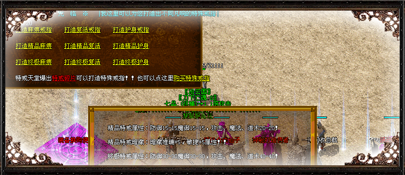 【更新】特戒系统更新,精品特戒暗藏10点准确和10点敏捷属性!!终极特戒暗藏20点准确和20点敏捷属性和传送属性!!