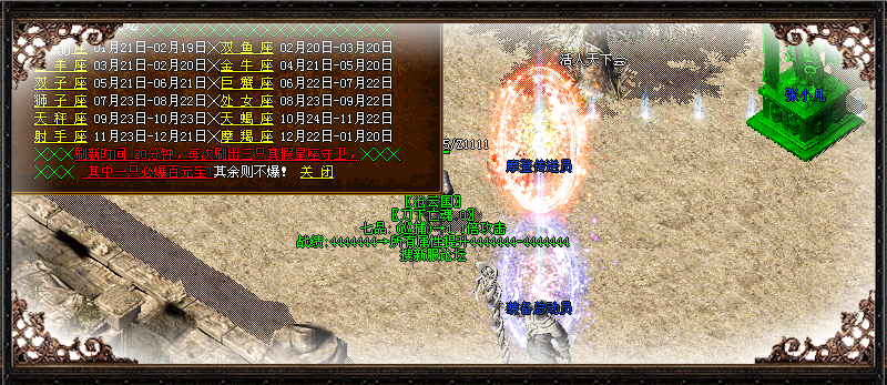 【更新】增加12星座,每20分钟每个星座刷3只守卫,其中一只为真,杀死必爆200元宝!!