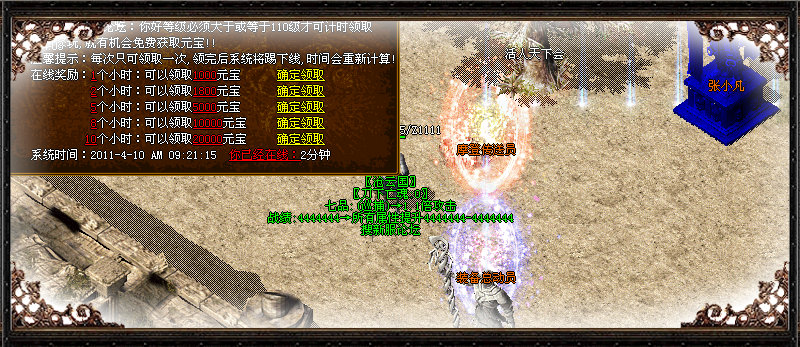 【沙城奖励】本服开区第二天举行大型集体攻城,行会老大无需递交头像,首任沙城主奖励二十万元宝+复仇一套,以后每天一次攻沙站,周六日及节假日再加一次,每天每次奖励两万元宝!
