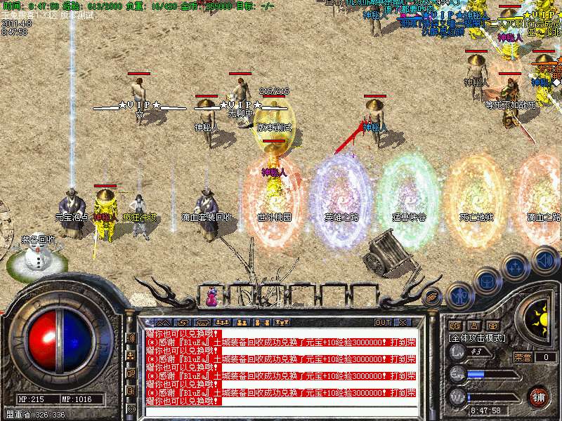 【沙城系统】沙城城主尽显王者风范,可以全服红字公告!武器最多升5点,时间为3分钟左右一次!