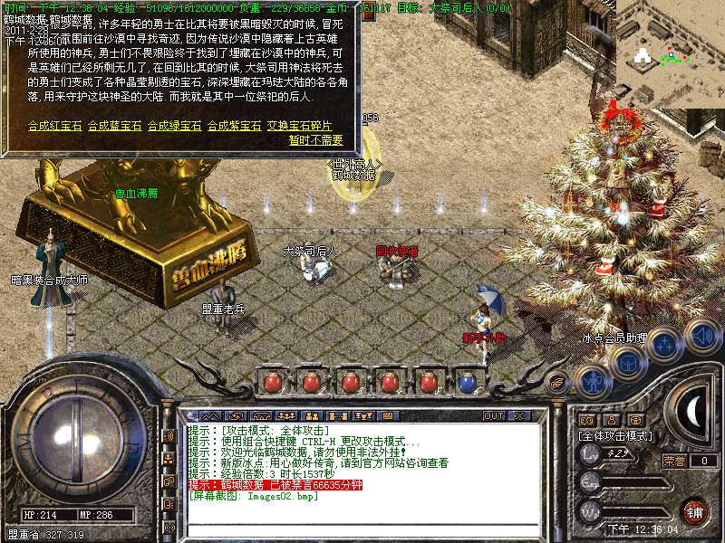 <69,0>牛魔大厅门口的裁决之神可以用宝石合成彩色裁决,属性很不错.宝石在盟重祭祀后人处合成..