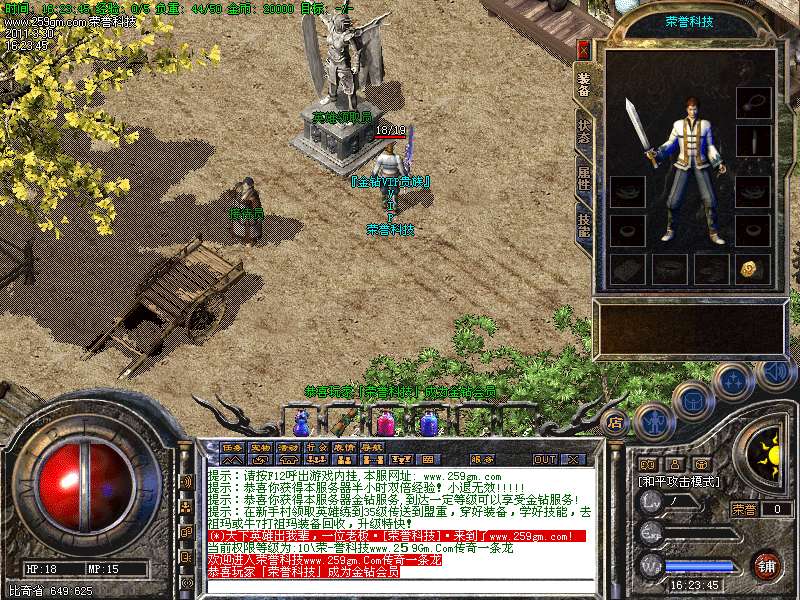 6、综合服务员:各项辅助功能,介绍下装备回收系统:祖玛回收2元宝+3w经验,赤月回收10元宝+25w经验,衣服武器回收20元宝+50w经验,大大的提高了元宝数量和经验值,让你打装备也能快速升级!