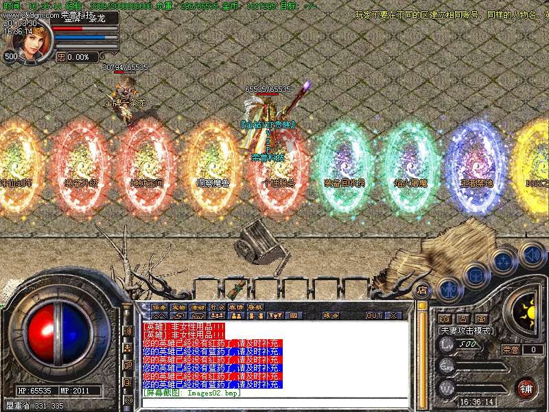 4、王者禁地:进入需要10w金币。里面每半小时刷新一次暗之怪物和圣域怪物,是打40级衣服和勋章的好地方!