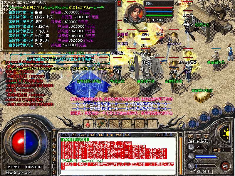 温馨提示:本服元宝比例1=300000。点卡多送80%。网银多送100%!!!!请到官方网<$WEBSITE>进行冲值