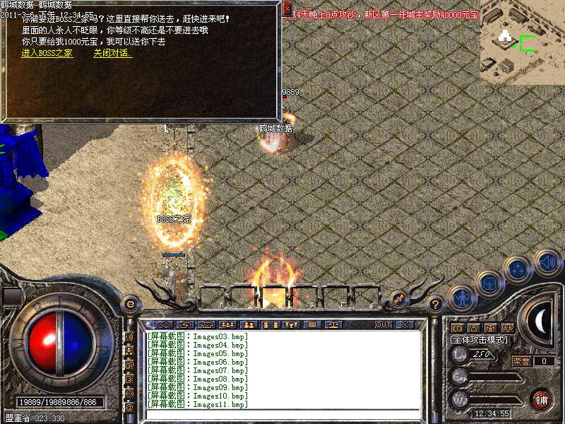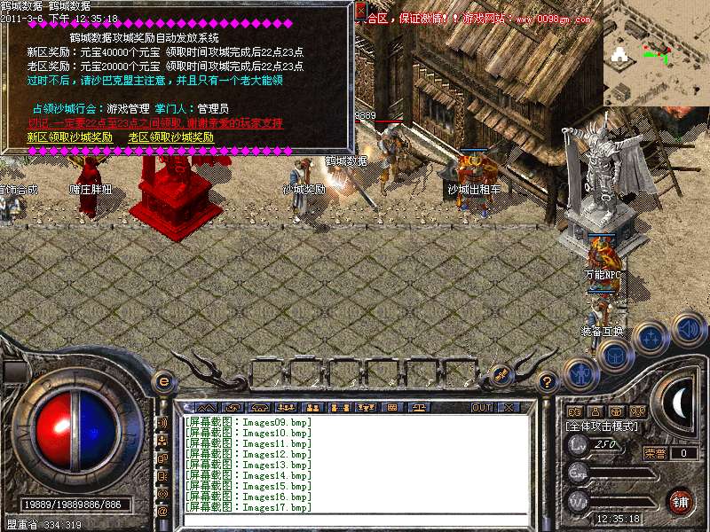 新区开区后第4天晚上8点攻沙,新区第一任城主奖励40000元宝,老区天天攻城,奖励20000元宝!