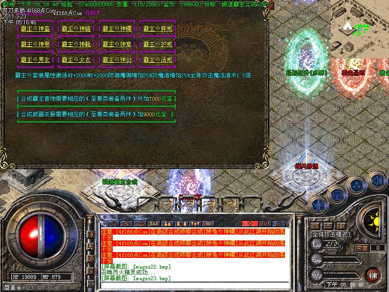 装备合成:本服所有装备全部采用合成系统,全部二合一,所有装备都有爆