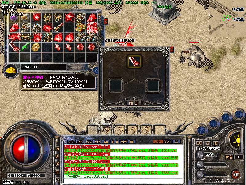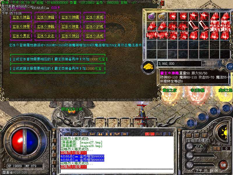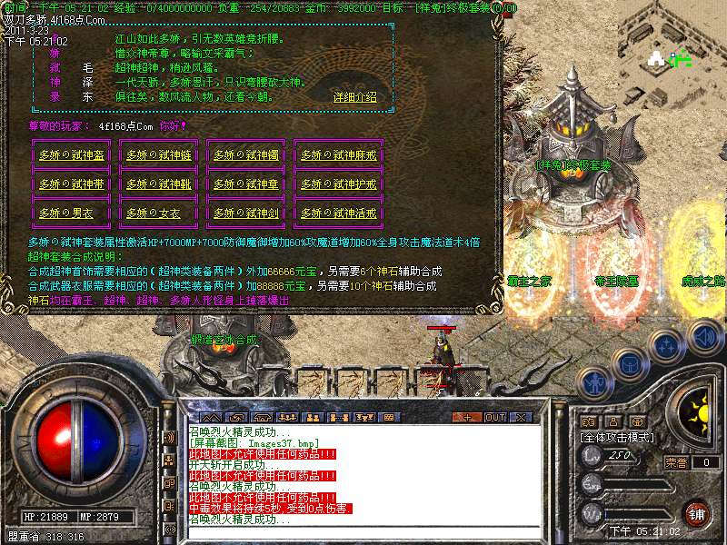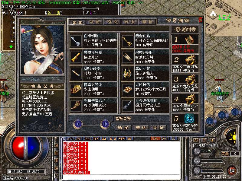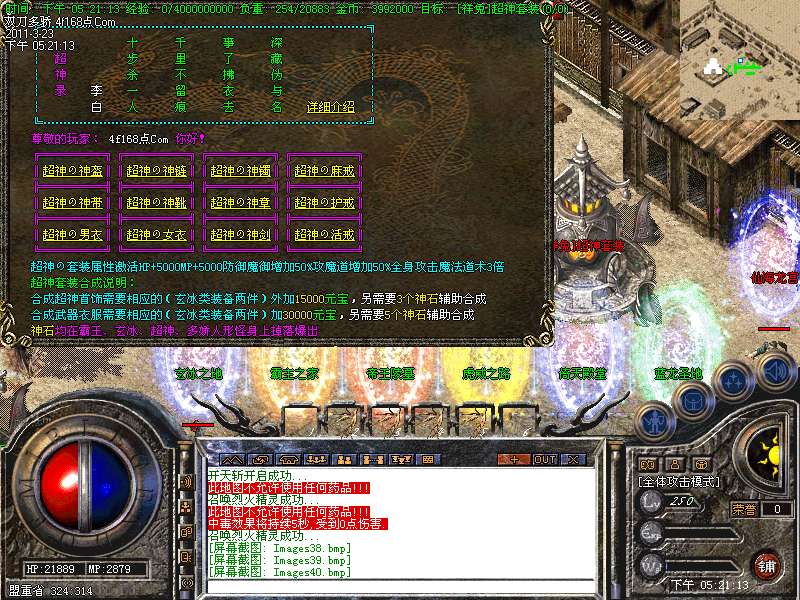 元宝获取:充值元宝送积分换取道具,也可以通过打怪和回收装备获得丰厚的元宝