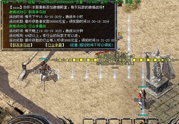 6.攻沙指南:开区3天后全区行会统一攻沙,首次奖励:50万元宝.