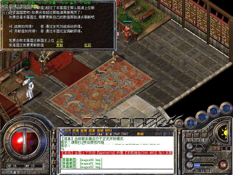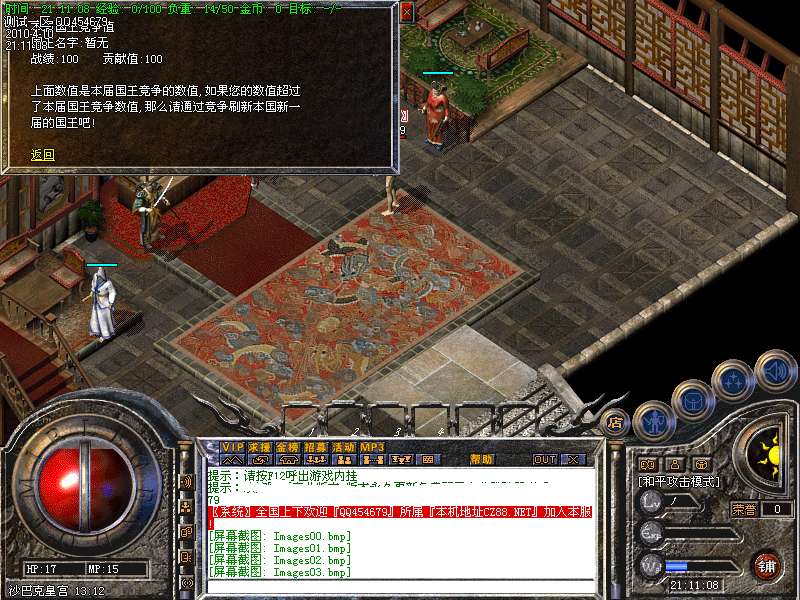 7.本服设有VIP,在线MP3,等等功能玩家可在线听音乐玩游戏,PK时可点播DJ来处性。