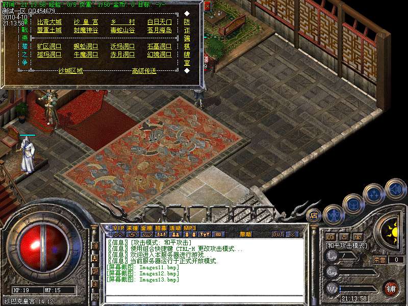 5.生死对战活动,活动时间到了,系统会全服提示,玩家根据屏幕上的活动按扭,选择相关的活动而参加,进入时是进入统一一个地图休息间安全区域,当时间