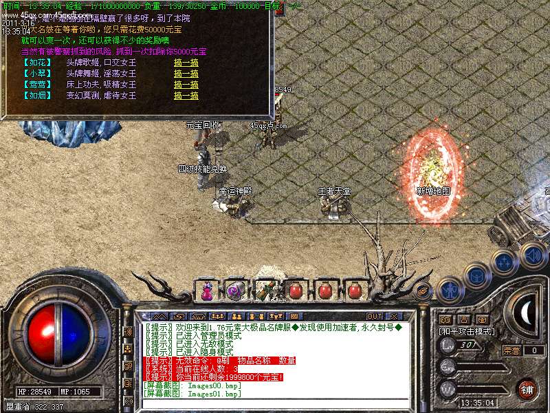 服务器最新增加了等级任务系统,每5级服务器会自动送出任务传送卷,进入指定地图.详见土城传送员,或者土药店NPC!