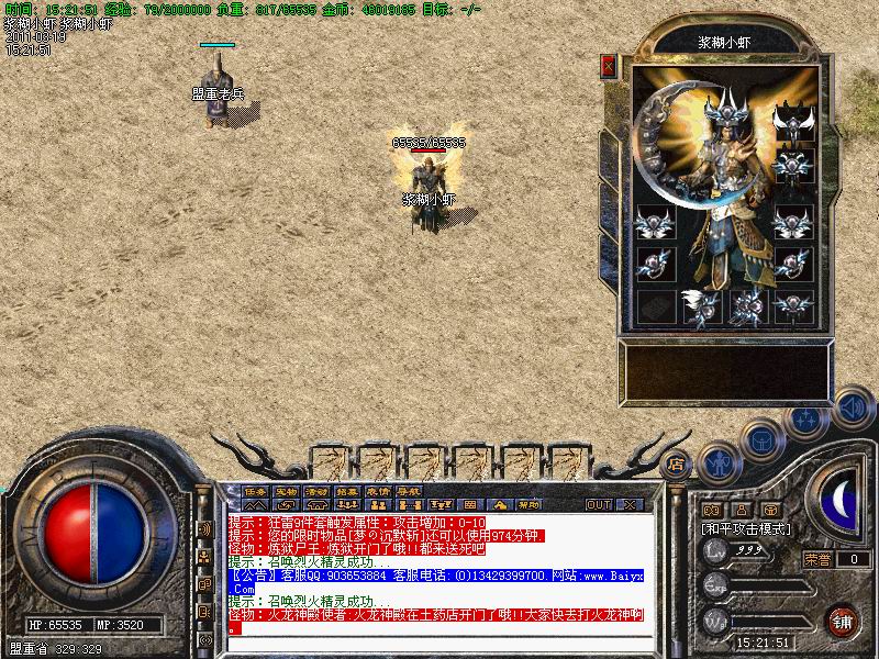 本服暴率较高,大家很快有战神级装备,稀世装备比较难爆,版本是在仿盛大1.85基础上,更新到了最新装备和装备技能,功能更多,任务奖品丰富,活动激情无限